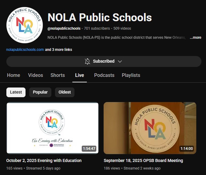 Check out the NOLA-PS Youtube Channel, where you will find: